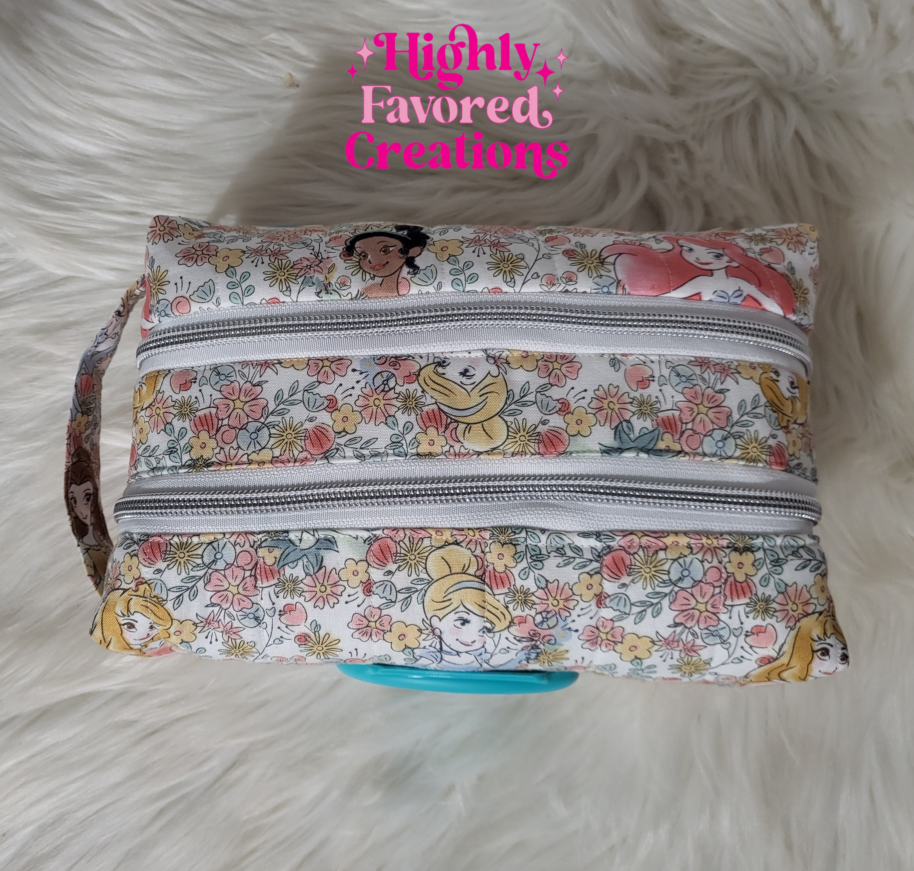 Stay stylish and organized on the go with this adorable handmade diaper pouch! Featuring a charming princess and floral print, this pouch is perfect for busy moms who want to keep baby essentials neat and easy to grab.